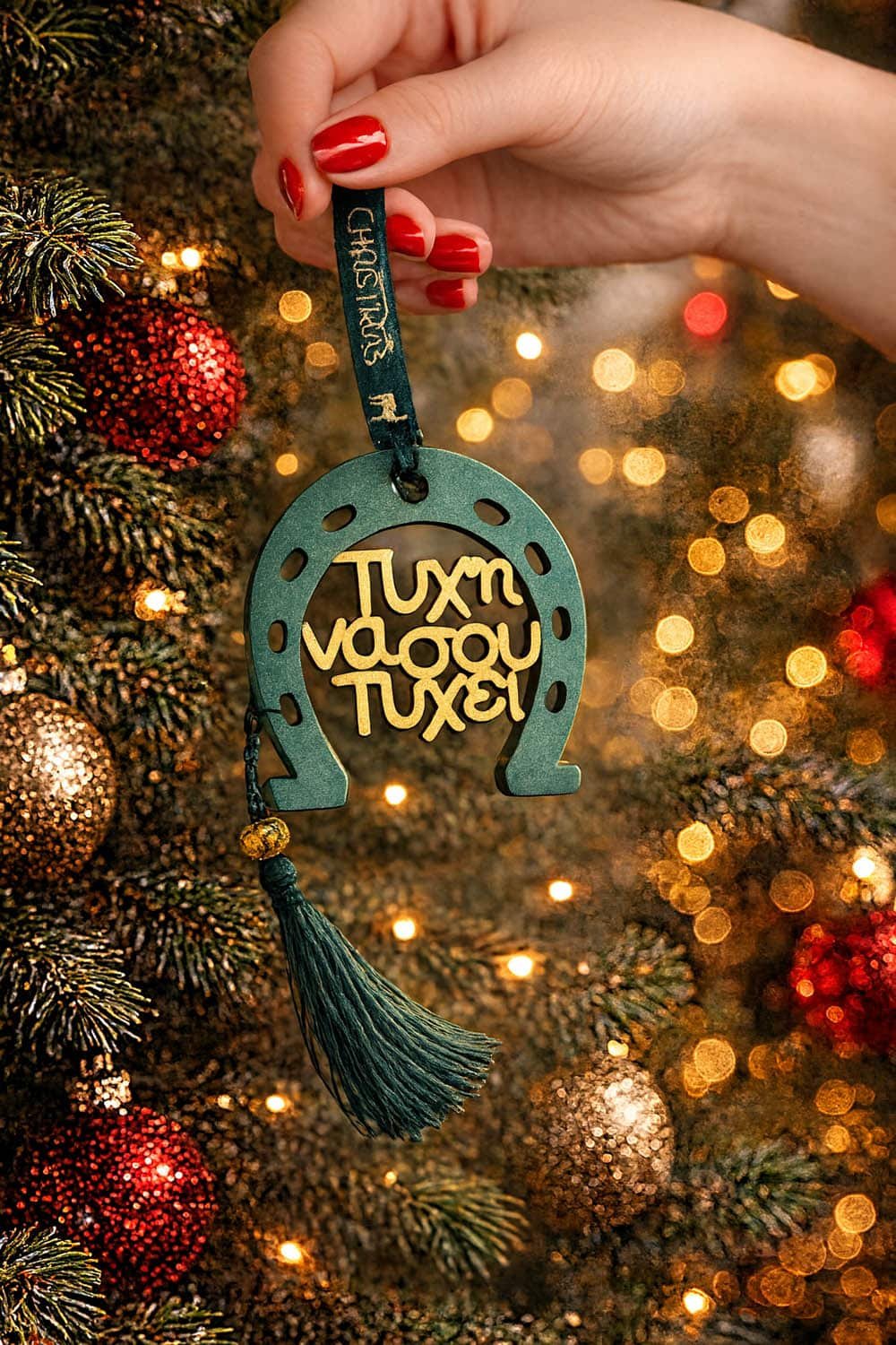 Χειροποίητο γούρι πέταλο με μήνυμα «Τύχη να σου Τύχει». Βαμμένο στο χέρι, γεμάτο θετική ενέργεια και χριστουγεννιάτικη λάμψη! 🍀✨