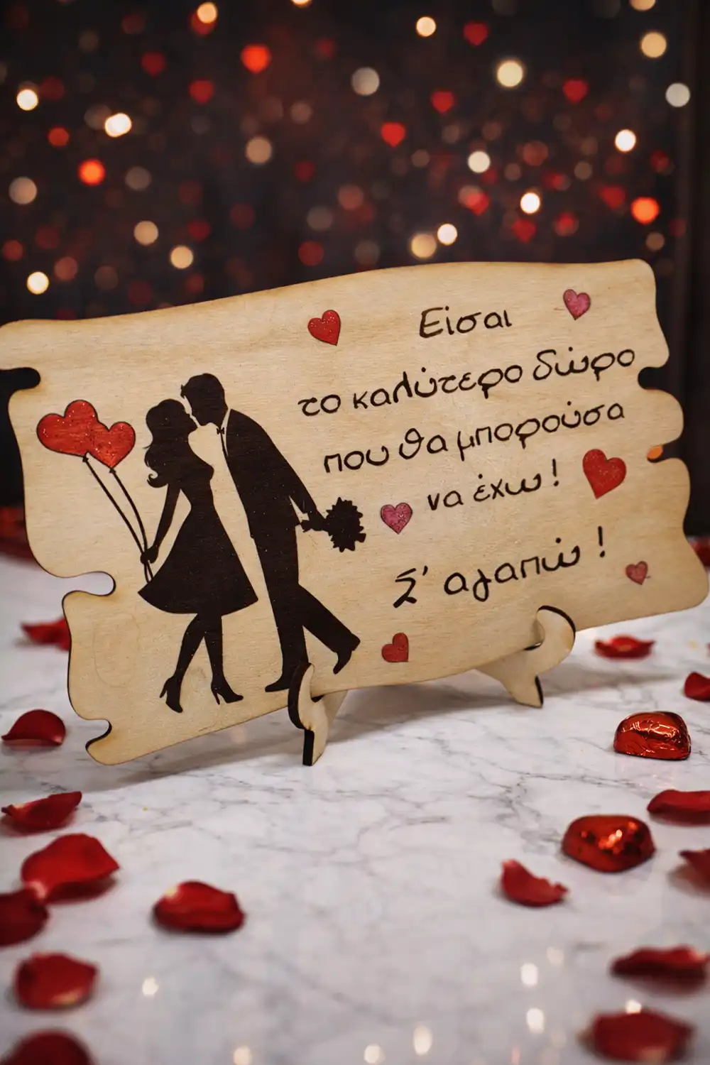 Ξύλινη διακοσμητική πλακέτα με ρομαντικό μήνυμα, ιδανική για δώρο σε αγαπημένο πρόσωπο και για διακόσμηση κάθε χώρου.