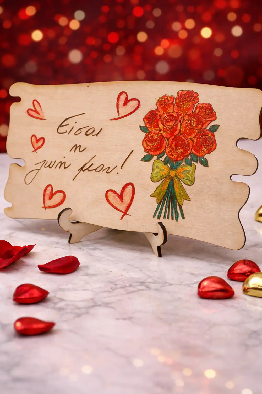 Ξύλινη διακοσμητική πινακίδα με ρομαντικό μήνυμα, ιδανική για δώρο σε αγαπημένο πρόσωπο και για διακόσμηση κάθε χώρου.