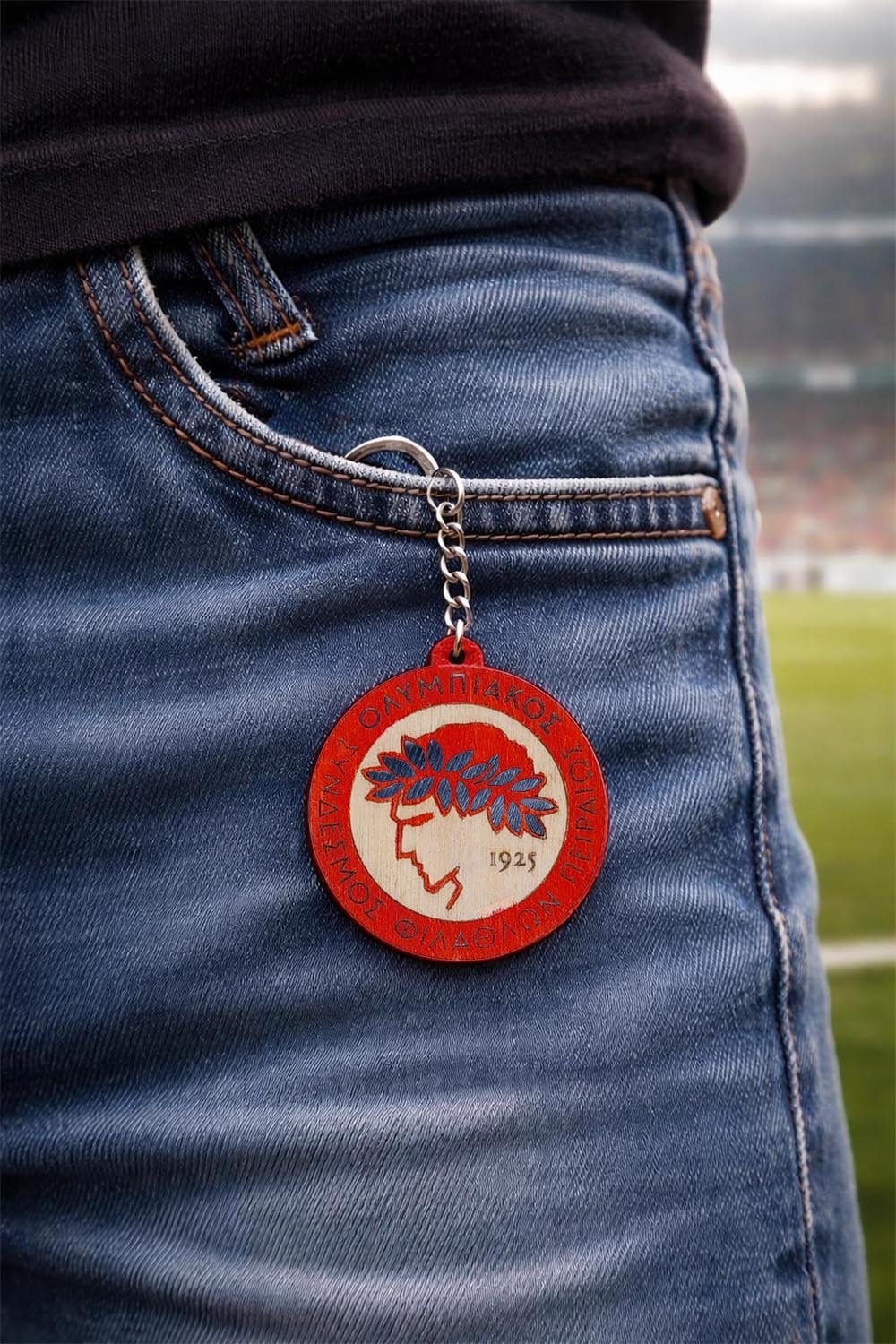Ξύλινο μπρελόκ Ολυμπιακός με χάραξη ονόματος ή μηνύματος