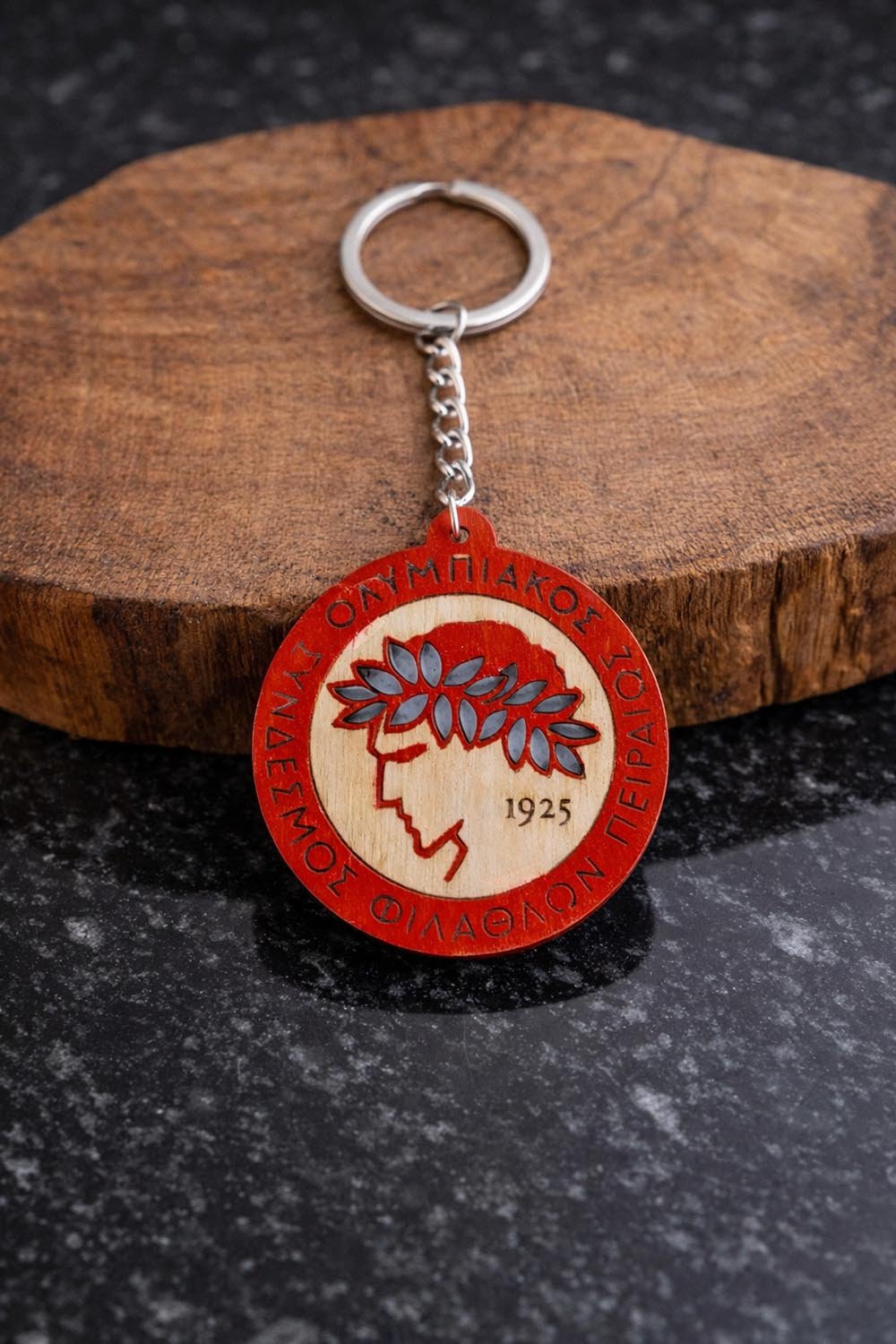 Ξύλινο μπρελόκ Ολυμπιακού με το ερυθρόλευκο έμβλημα και το έτος 1925. Ιδανικό για φιλάθλους και καθημερινή χρήση. Υπάρχει η δυνατότητα χάραξης δικού σας ονόματος ή μηνύματος !
